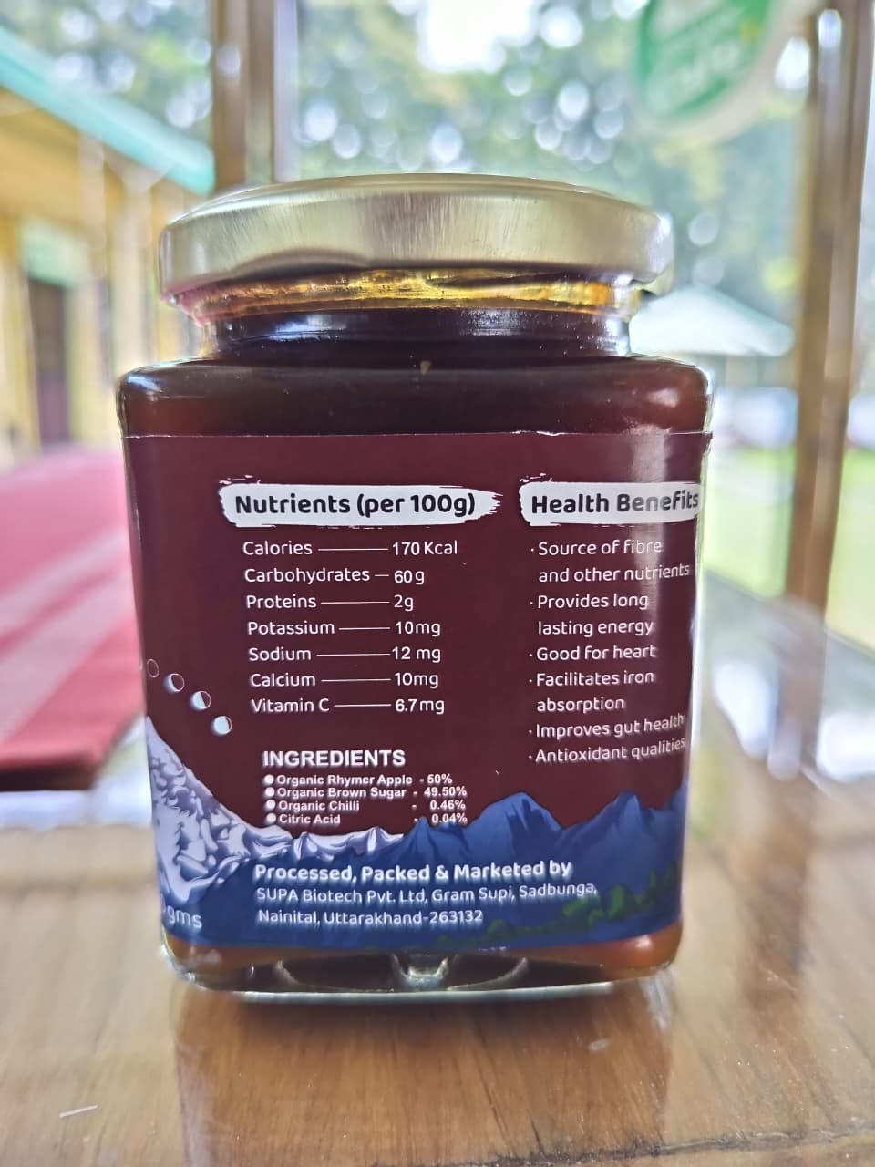 From the calm orchards of Ramgarh, Nainital, SUPA Farm brings you pure Apple Chutney. It is made from organically and biodynamically grown heirloom Rhymer apples. The chutney is blended with organic brown sugar and spring water. Made in small batches, it carries the sweetness, tartness, and freshness of mountain fruits. Each spoonful offers an authentic taste and wholesome goodness. It pairs perfectly with parathas, curries, breads, and cheeses.